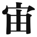 The kanji is classified as a compound character (会意文字), as it combines elements to convey a specific meaning.