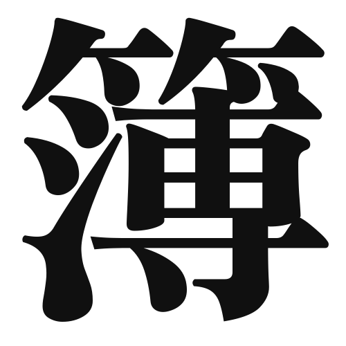 The kanji “簿” (bo) primarily means “book” or “register.” It is often used in contexts related to accounting, records, and documentation.